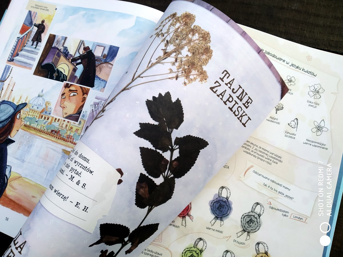 Ciekawym dodatkiem do książki są tajne zapiski naszej pani detektyw, czytelnik dowiaduje się między innymi symboliki kwiatów.